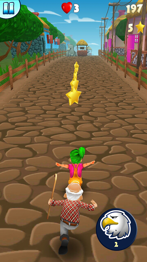 Kids The Menace is one of the most ambitious runner games with its 3D scenes, incredible graphics, sounds & musics and addictive gaming style. The characters of the game are close friends living in a mountain village. They are caught on act by the old grandpa when stealing apples and chase begins. You have to pass through many obstacles and collect as many golds as possible when running on the road leading to valleys and bridges.You can use these golds for: