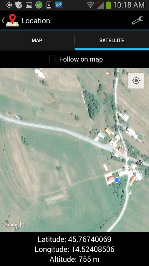 Shows your current location on the map, current GPS coordinates and the altitude.