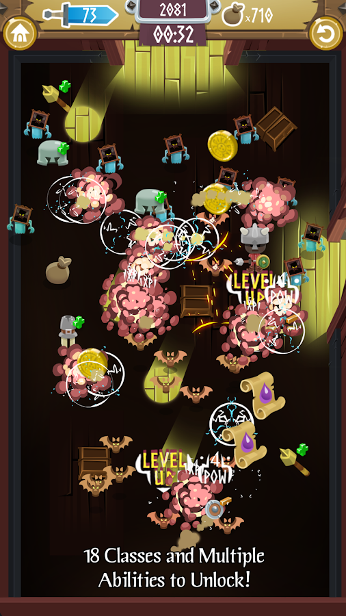 • Your score for a level is: totalEXP + totalItemPower * 5 – it's a direct measure of how strong you are, regardless of the class you selected!