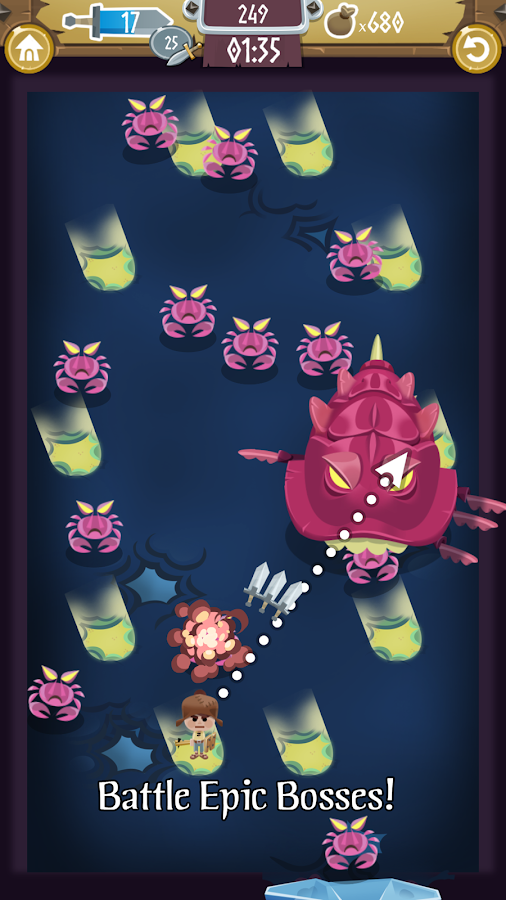 You will travel through 10 kingdoms on your way to the Blitz Keep, where the dastardly Blitz Mage resides. Each kingdom has a king that has been transformed into the most horrible of creatures – a huge boss monster. Beat the boss to move on to the next land.