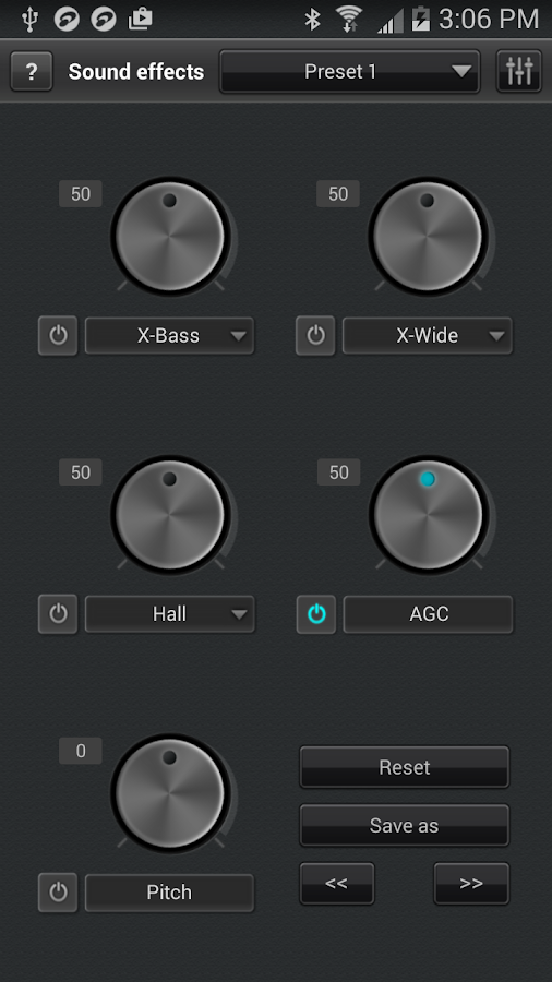 * X-Wide, Reverb, X-Bass sound effects