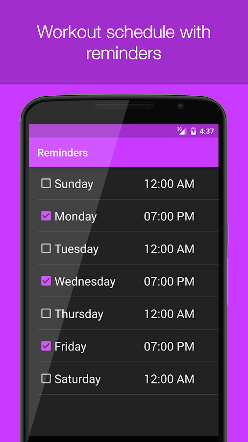 • Workout schedule with reminders