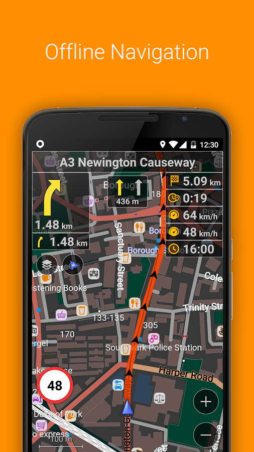Enjoy voice and optical navigation, viewing POIs (points of interest), creating and managing GPX tracks, using contour lines visualization and altitude info, a choice between driving, cycling, pedestrian modes, OSM editing and much more.