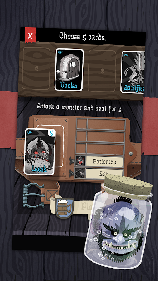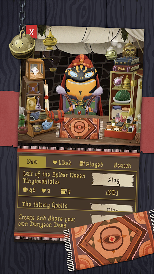 Clear the Dungeon of 54 cards by using item-cards, slaying monsters and managing your limited inventory. Each run you can use 5 ability-cards (mini deck building) which will give you unique skills. By collecting gold you can unlock the first 10 ability-cards which enable new tactics and even better highscores. By buying the full game you can unlock 20 additional cards with even better abilities.Card Crawl’s 4 single player game modes are enhanced via Google Play services to compare scores and the associated decks created by each player. A typical game can be played within 2-3mins and is a perfect one more game experience while waiting in line or commuting