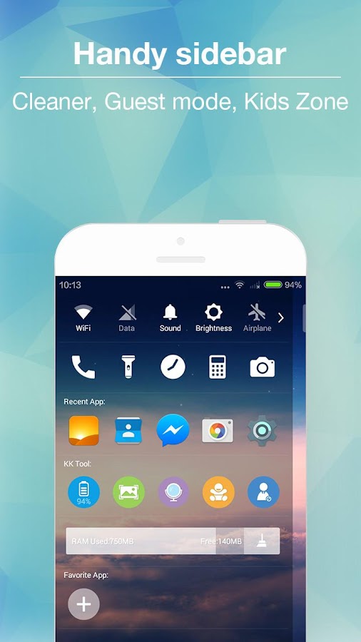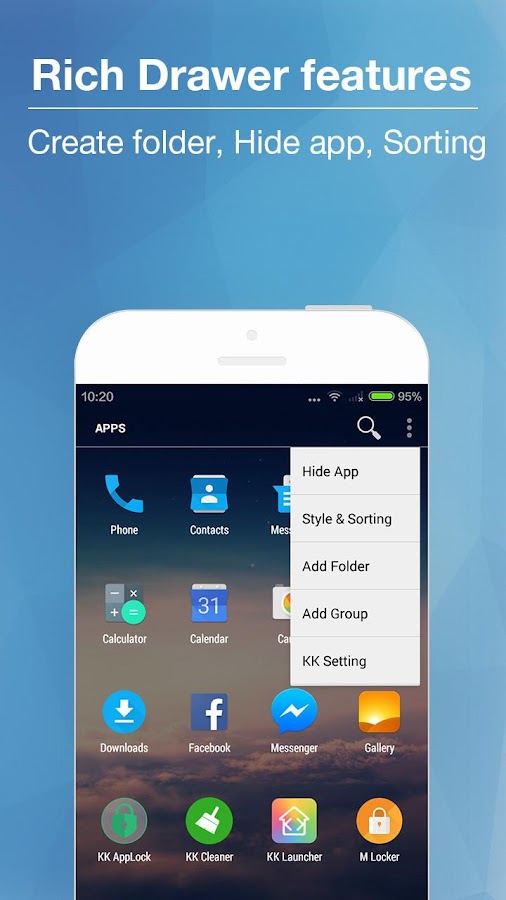 1. KK Launcher have 20+ unique,COOL and useful features: such as Sidebar, Super folder, Private folder, App Lock, Double tap to turn off screen