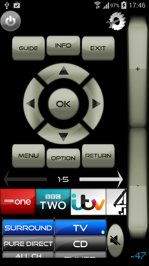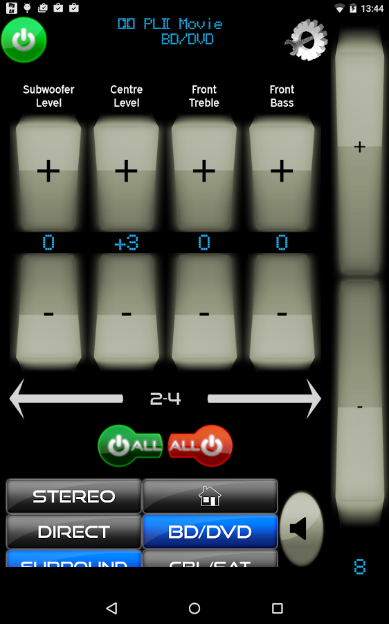 -One main volume control for your receiver that is always on hand (can use hard buttons on some android devices).